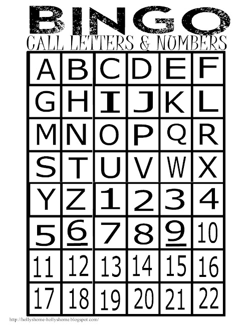 BINGO CALL LETTERS AND NUMBERS - Here is an easy way to call simple letters and numbers. Just write the numbers and letters (from the sheet below) out on each Bingo board. Write them in a different order, using different letters and numbers, on each board. Then print out the page below and cut up the squares. Pull out squares and call the letter or number until someone has BINGO. This is great idea for young kids, or a nursing home.